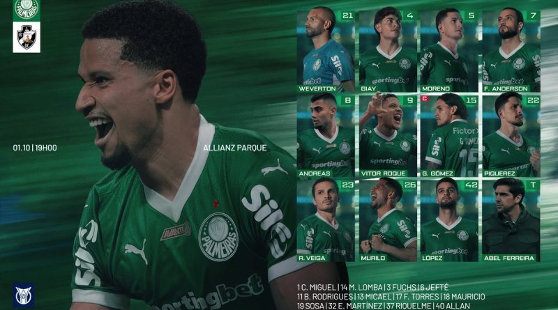 Veja a escalação do Palmeiras para o jogo contra o Vasco