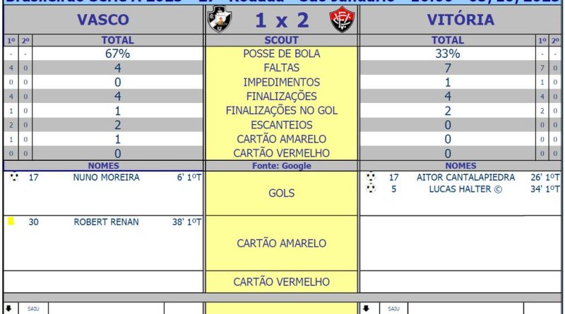 EsportesFutebolVascoVasco Veja os números do 1º tempo de Vasco x Vitória outubro 5, 2025 admin Acerj @acerjrio Scout do 1º Tempo de Vasco e Vitória pela 27ª Rodada do Campeonato Brasileiro 2025 em São Januário (Fonte: Google) #Acerjinforma #brasileirao2025 #VASxVIT #VascodaGama #ECVitoria @Brasileirao @VascodaGama @ECVitoria Fonte: X Acerj