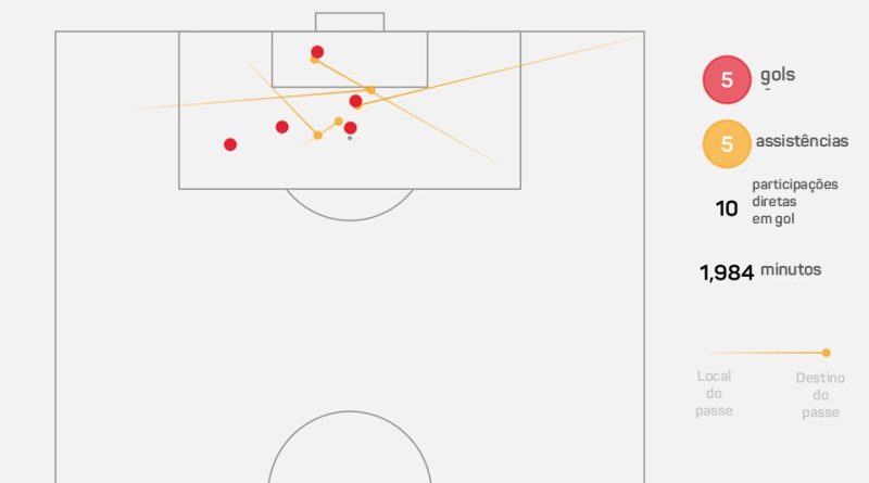 5+5 – Nuno Moreira é o quarto jogador do Vasco a ter pelo menos cinco gols e cinco assistências numa mesma edição de Brasileirão Série A desde 2012: