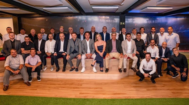 Dirigentes posam durante encontro da LFU na sede da LiveMode, no Rio de Janeiro (RJ), no final de fevereiro – Rafael Brito / Divulgação