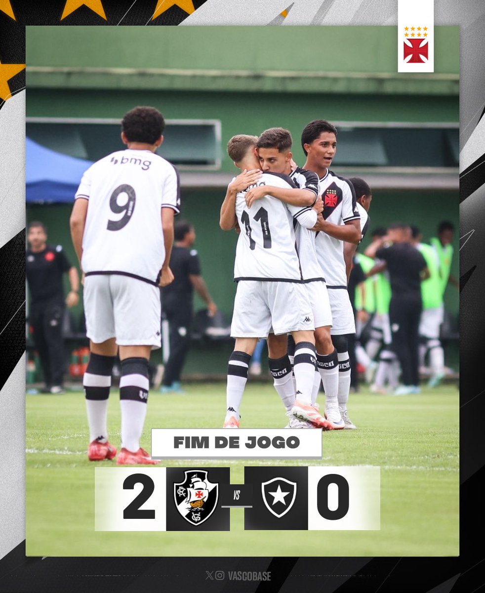 Vasco vence o Botafogo por 2 a 0, no Estádio Nivaldo Pereira, pelo jogo de volta das semifinais da Copa Rio Sub-15, fechando o placar agregado em 3 a 0. Os gols foram marcados por Matheus Sampaio e Brian Fernandes.