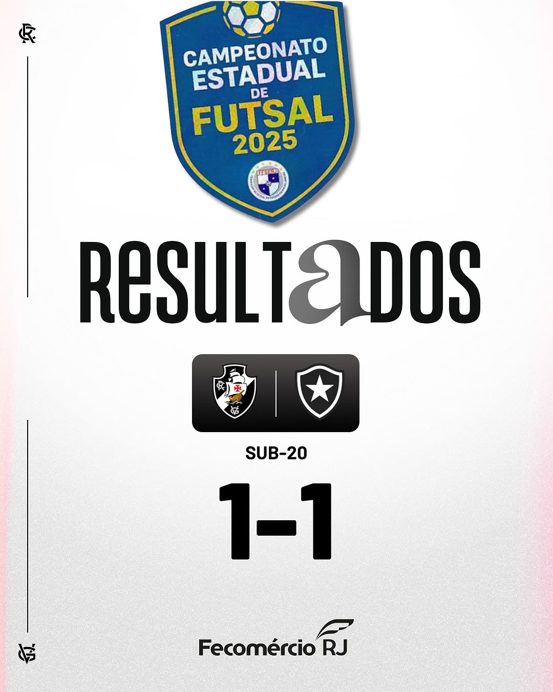 Pelo Estadual de futsal sub-20, Vasco e Botafogo ficam no 1×1, na inauguração da Arena Oleybet, em Olaria.