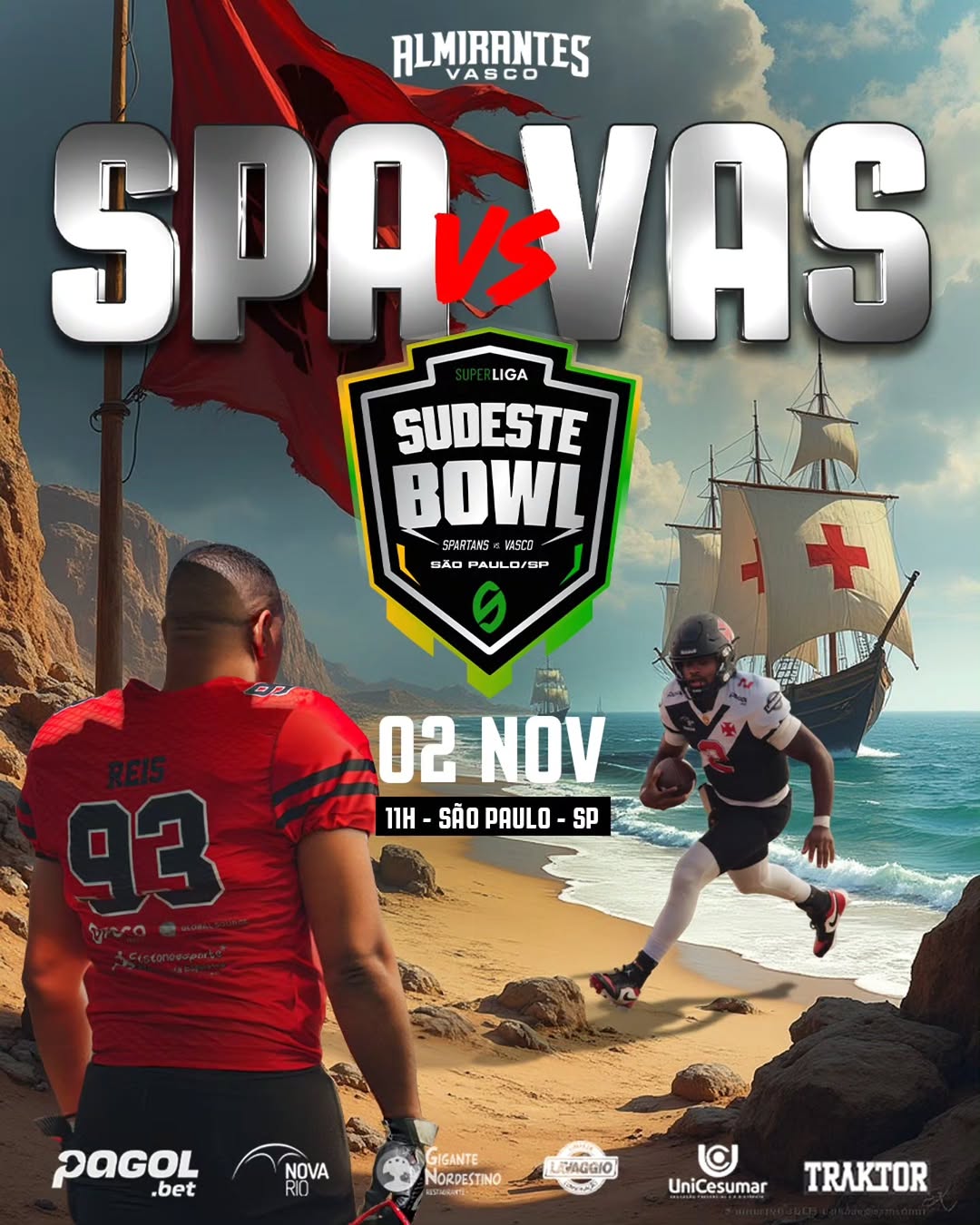 Vascaínos, domingo as 11h temos um encontro no Centro de Treinamento Touchdown (Rua peixe vivo, 155) em São Paulo na disputa da final de conferência Sudeste SuperLiga de Futebol Americano. E o melhor, ENTRADA FRANCA!