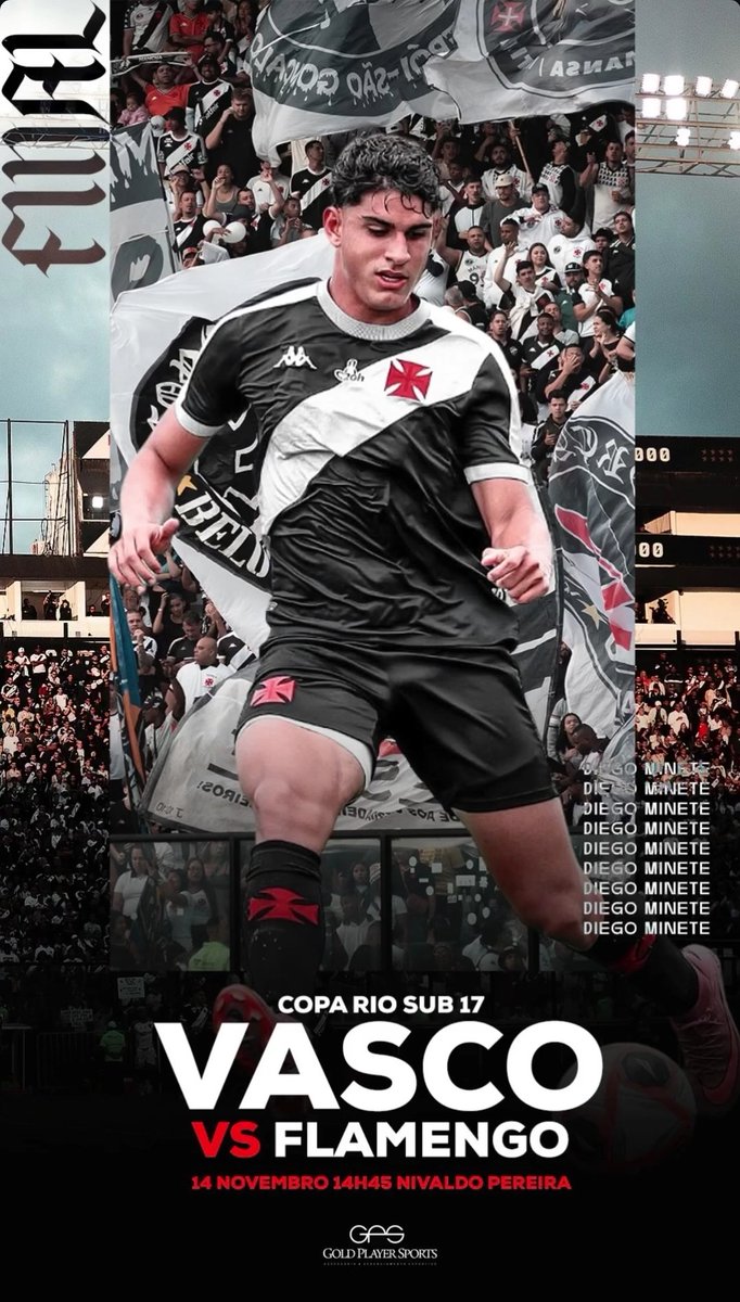 Atacante Diego Minete será reforço do Sub-17 no jogo da volta da final da Cop Rio da categoria contra o Flamengo. A partida acontecerá nesta sexta-feira, às 14h45, no Nivaldo Pereira. No 1° jogo, o Vasco perdeu por 2 a 1, na Gávea. Se vencer por um gol, vai pra pênaltis.