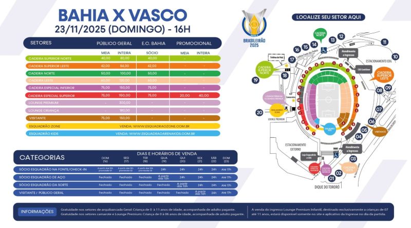 Domingo (23/11) às 16h tem disputa entre Bahia e Vasco, para acompanhar esse jogo de perto fique ligado nas informações de venda: