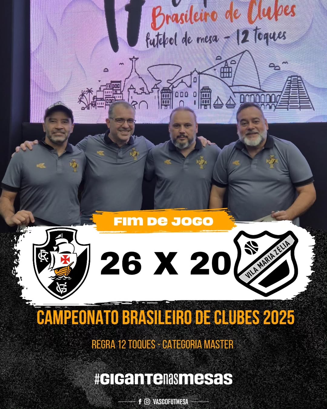 Equipe segue com 100% de aproveitamento na 17ª edição do Campeonato Brasileiro Interclubes de Futebol de Mesa da Regra 12 Toques. Amanhã mais dois jogos em cada categoria: Master e Adulto.