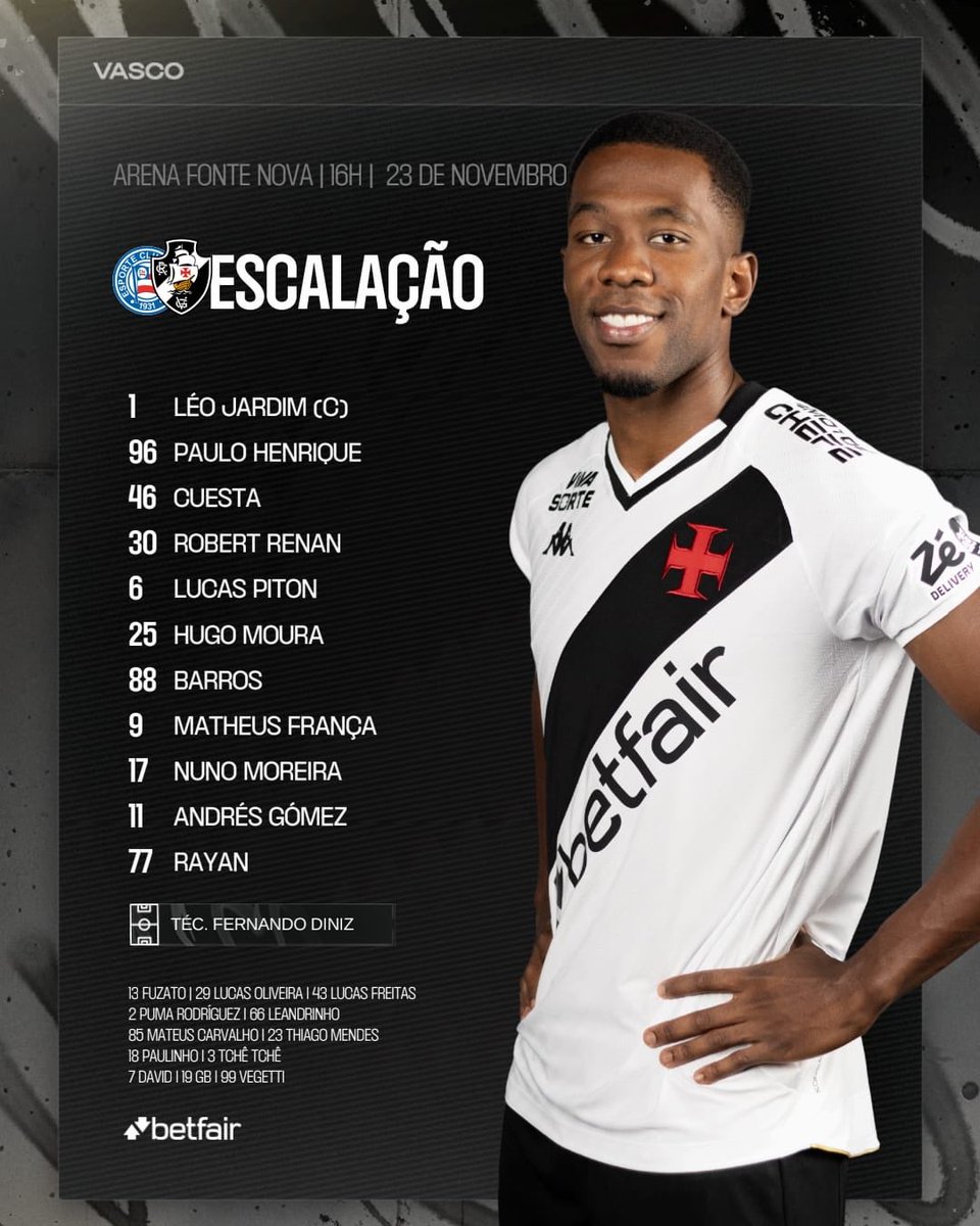 🎥 O VASCO DA GAMA ESTÁ DEFINIDO, ESCALADO E NUMERADO! 💢