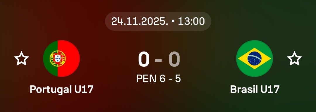 Brasil eliminado nos pênaltis no Mundial Sub-17 para Portugal, após 0 a 0 no tempo normal da semifinal.