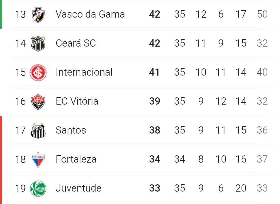 Obs.: Somente o Fortaleza tem um jogo a mais pra disputar, contra o Bragantino na próxima quarta-feira.