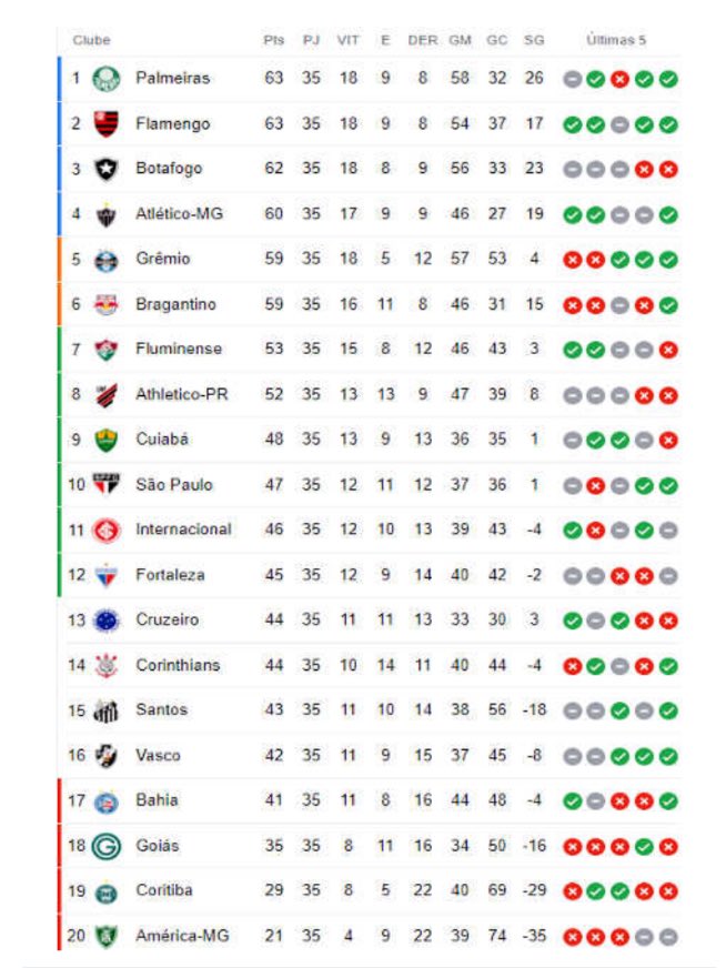 👀 Essas eram as pontuações da 35° rodada do Brasileirão nas temporadas 2023-2024.