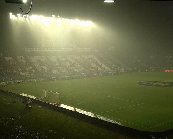 Dilúvio em São Januário nesse intervalo vai castigando o novo gramado.